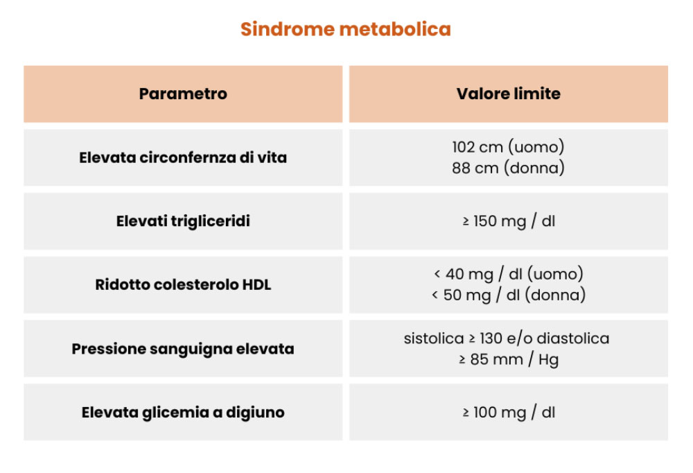 a) Sindrome metabolica, una condizione complessa che si manifesta quando sono presenti contemporaneamente almeno tre delle seguenti condizioni: iperglicemia, ipertensione, dislipidemia e obesità addominale (misurata con la dimensione del girovita). Pur avendo una predisposizione costituzionale, il suo sviluppo è fortemente influenzato da una vita sedentaria, da un’alimentazione ipercalorica, dall’abitudine al fumo e all’alcol. Questa sindrome è associata a un aumento del rischio per molte patologie croniche, incluso il cancro.